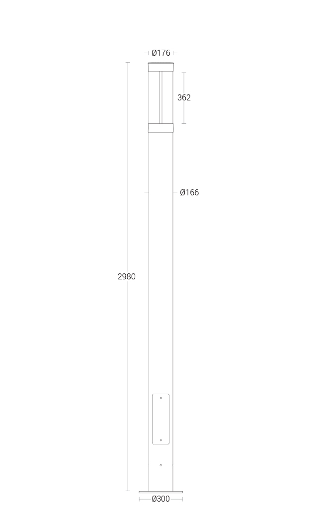 Elegant column lighting feature, which is suitable for both modern and classic architecture. Ideal for creating orientation with exceptional visual comfort. These luminaries offer general ambient light in open spaces giving a sense of security in night-time. Clean Lines and pure form are the underlying elements in this series of column light, designed to provide rotationally symmetrical illumination, Light emission 360°.